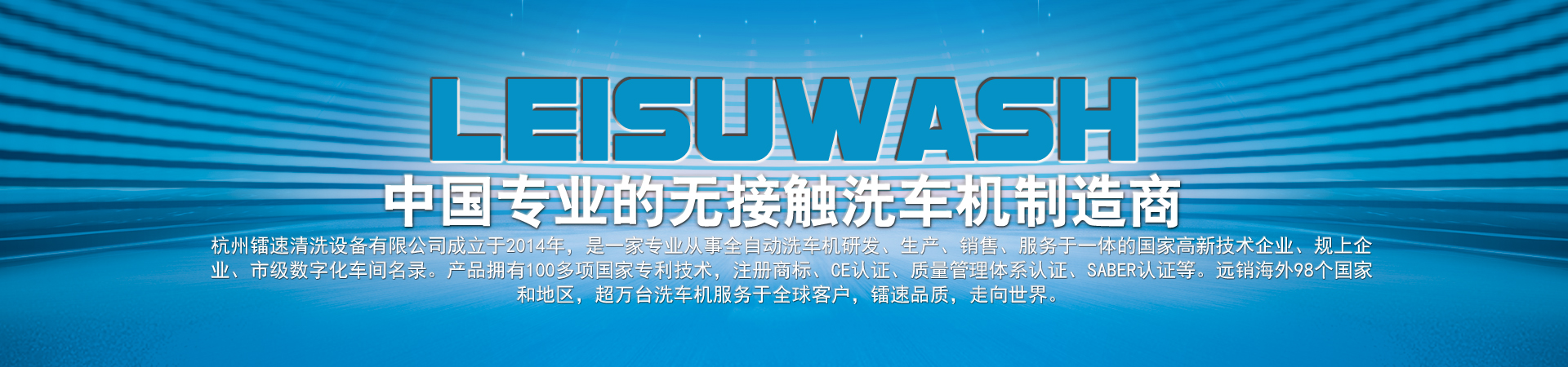 杭州鐳速清洗設(shè)備有限公司成立于2014年,是一家專業(yè)從事自動(dòng)洗車機(jī)研發(fā)、生產(chǎn)、銷售、服務(wù)于一體的國家高新技術(shù)企業(yè),注冊資金2000萬元。匯聚了一批專業(yè)的技術(shù)創(chuàng)新團(tuán)隊(duì),與時(shí)俱進(jìn),不斷創(chuàng)新,研發(fā)生產(chǎn)出質(zhì)量過硬、技術(shù)領(lǐng)先的全智能電腦洗車設(shè)備,是國內(nèi)集洗護(hù)一體全自動(dòng)汽車清洗系統(tǒng)的開拓者和領(lǐng)跑者。 鐳速公司一步一個(gè)腳印,一步一個(gè)臺(tái)階,通過不斷的努力和鉆研,厚積薄發(fā),從一家名不經(jīng)傳的小企業(yè),走到今天,成為中國洗車機(jī)行業(yè)出口最多的企業(yè)。鐳速品質(zhì)正逐步成為中國洗車機(jī)行業(yè)的高品質(zhì)代名詞,真正進(jìn)入國際一線洗車機(jī)行列,打造贏得全球信賴的中國品牌!